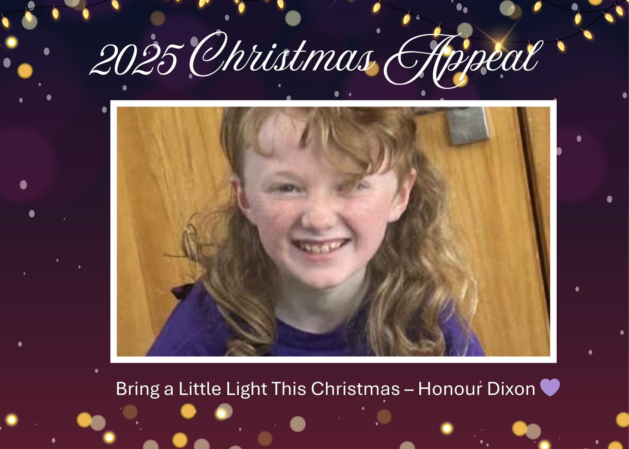 2025 CHRISTMAS APPEAL Bring a Little Light This Christmas – Honour Dixon 💜